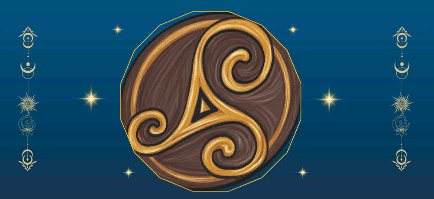 Die Triquetra steht für das ewige Zusammenspiel und die Abhängigkeit von Körper, Geist und Seele und wird deshalb häufig bei Meditationen und Ritualen verwendet. In der Wicca-Tradition ist der Dreifaltigkeitsknoten ein Symbol der Göttin und wird als Zeichen für die drei Phasen des Mondes gesehen: jung, voll und abnehmend. Der Dreifaltigkeitsknoten erinnert daran, dass alles im Universum miteinander verbunden ist und dass alles in Zyklen verläuft. Heute findet man ihn oft als Talisman, um Schutz und Beständigkeit im Leben zu fördern.