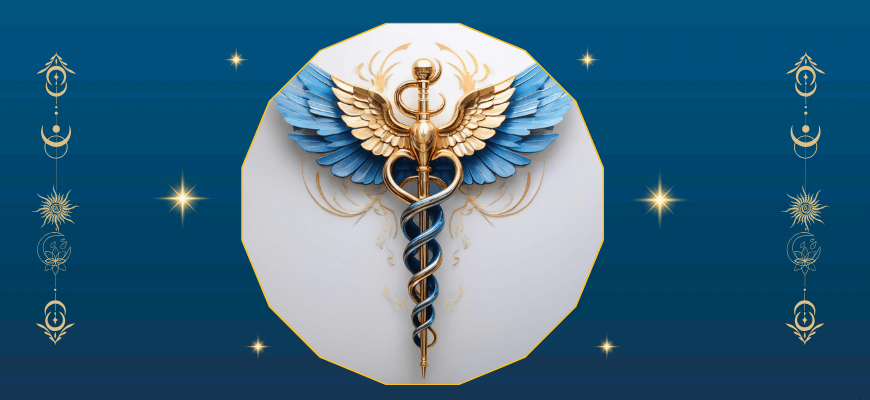 Die Schlangen auf dem Caduceus repräsentieren Gegensätze, die sich in einer harmonischen Balance vereinen – ein Bild für Heilung und Transformation. Das Symbol steht für den Fluss von Energie und die Balance zwischen dem physischen und dem spirituellen Bereich. In der westlichen Medizin wird der Caduceus fälschlicherweise oft mit der Heilkunst assoziiert, während das korrekte Symbol für Medizin der Äskulapstab mit einer einzigen Schlange ist.